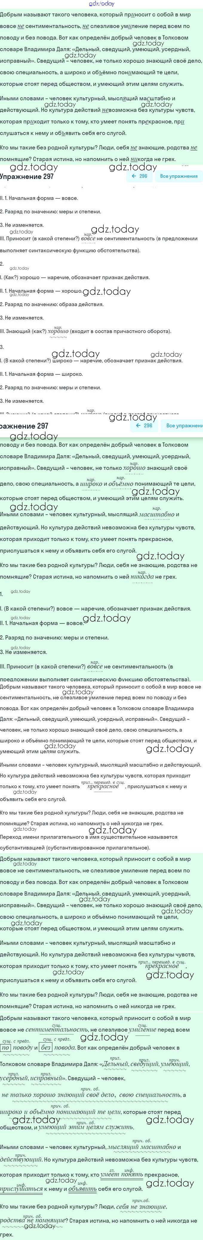 На страницах сайта gdz.today вы найдете учебный и вспомогательный материал, направленный на улучшения знаний школьной программы. ГДЗ - онлайн мир знаний Решение. Упражнения 297 Учебнику по Русскому языку для 7 класса Рыбченкова, Александрова Просвещение, Просвещение 2016, 2019