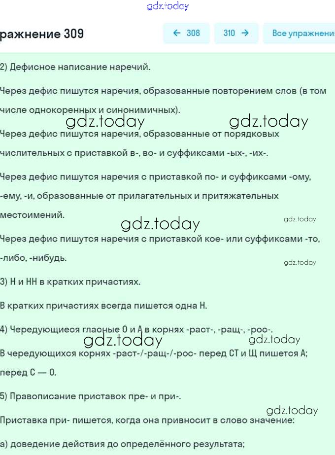 На страницах сайта gdz.today вы найдете учебный и вспомогательный материал, направленный на улучшения знаний школьной программы. ГДЗ - онлайн мир знаний Решение. Упражнения 309 Учебнику по Русскому языку для 7 класса Рыбченкова, Александрова Просвещение, Просвещение 2016, 2019
