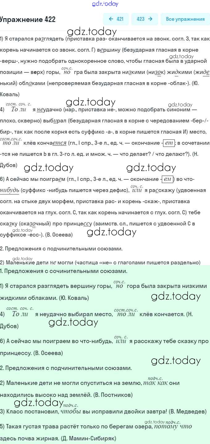 На страницах сайта gdz.today вы найдете учебный и вспомогательный материал, направленный на улучшения знаний школьной программы. ГДЗ - онлайн мир знаний Решение. Упражнения 422 Учебнику по Русскому языку для 7 класса Рыбченкова, Александрова Просвещение, Просвещение 2016, 2019