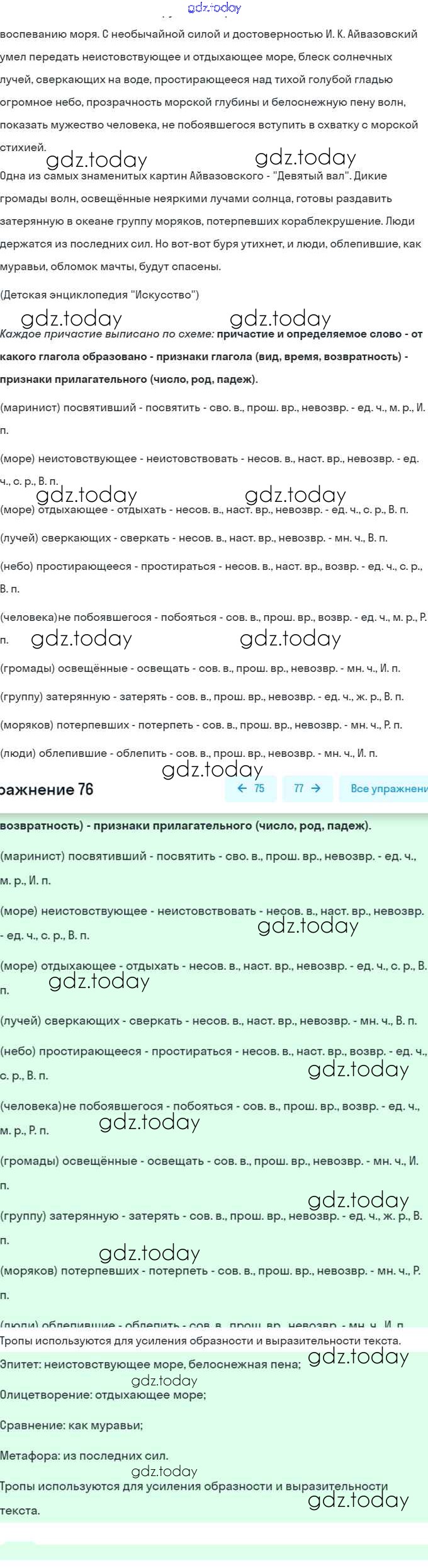 На страницах сайта gdz.today вы найдете учебный и вспомогательный материал, направленный на улучшения знаний школьной программы. ГДЗ - онлайн мир знаний Решение. Упражнения 76 Учебнику по Русскому языку для 7 класса Рыбченкова, Александрова Просвещение, Просвещение 2016, 2019
