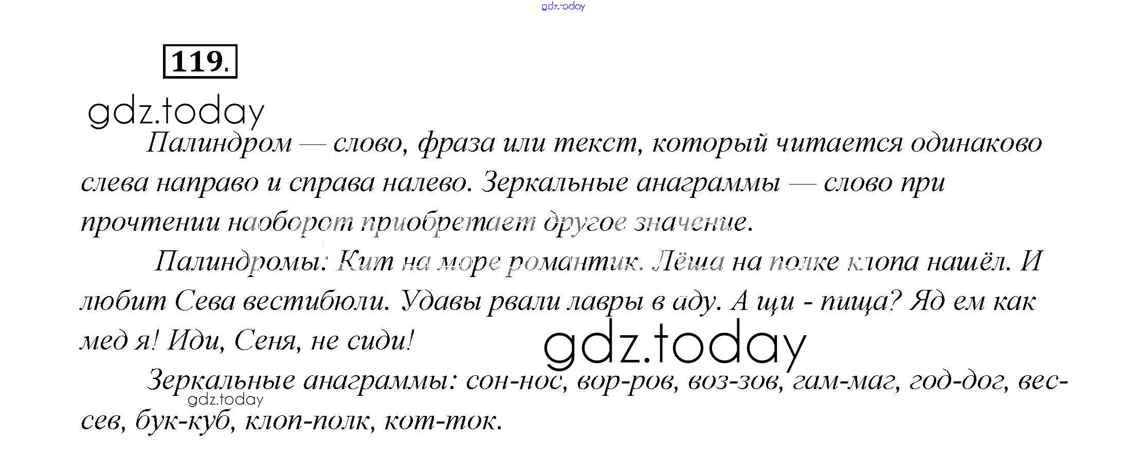 На страницах сайта gdz.today вы найдете учебный и вспомогательный материал, направленный на улучшения знаний школьной программы. ГДЗ - онлайн мир знаний Решение к главе 1 119 Учебнику по Русскому языку для 7 класса Шмелёв, Флоренская Вентана-граф Алгоритм успеха 2016