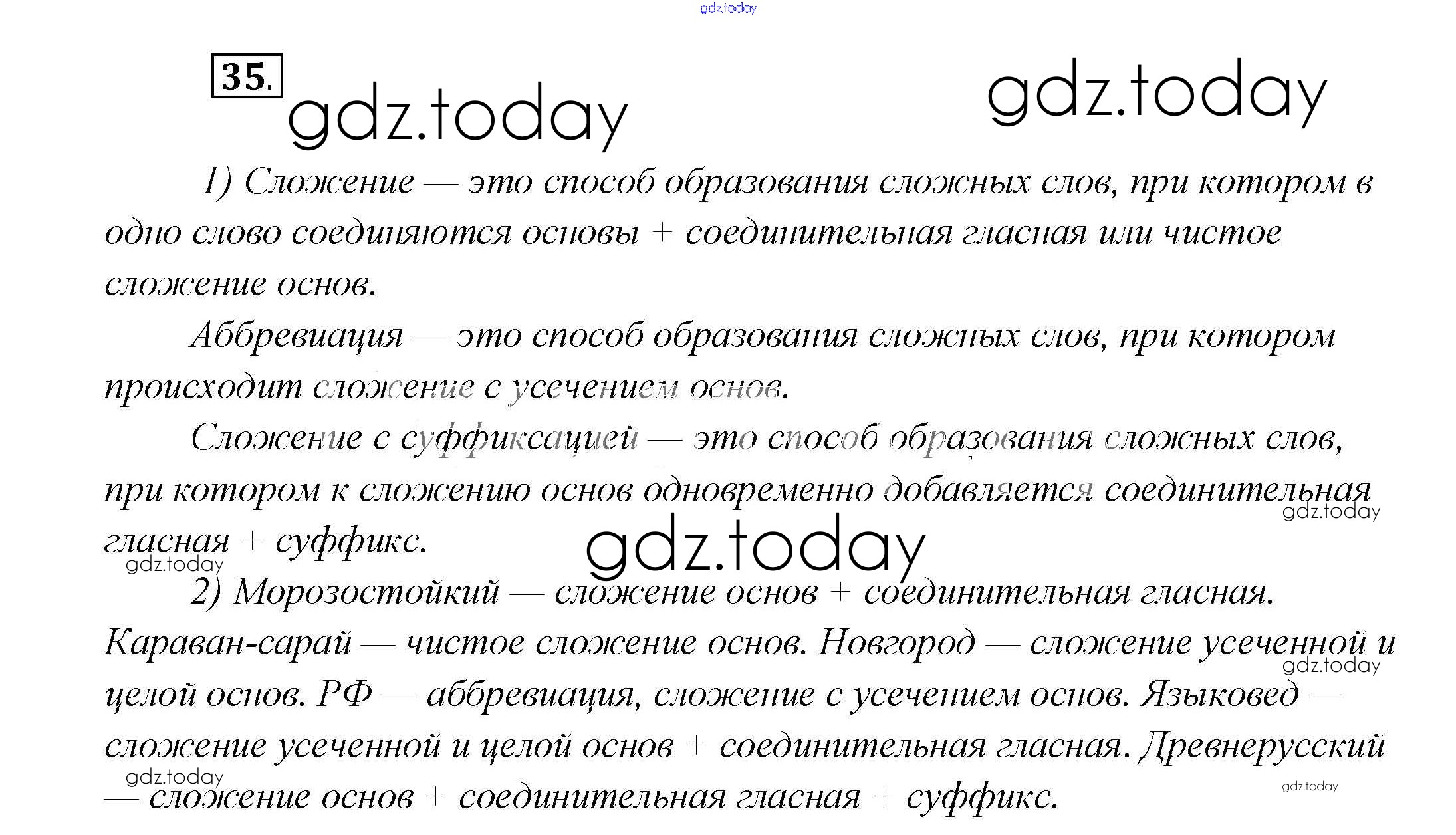 На страницах сайта gdz.today вы найдете учебный и вспомогательный материал, направленный на улучшения знаний школьной программы. ГДЗ - онлайн мир знаний Решение к главе 1 35 Учебнику по Русскому языку для 7 класса Шмелёв, Флоренская Вентана-граф Алгоритм успеха 2016