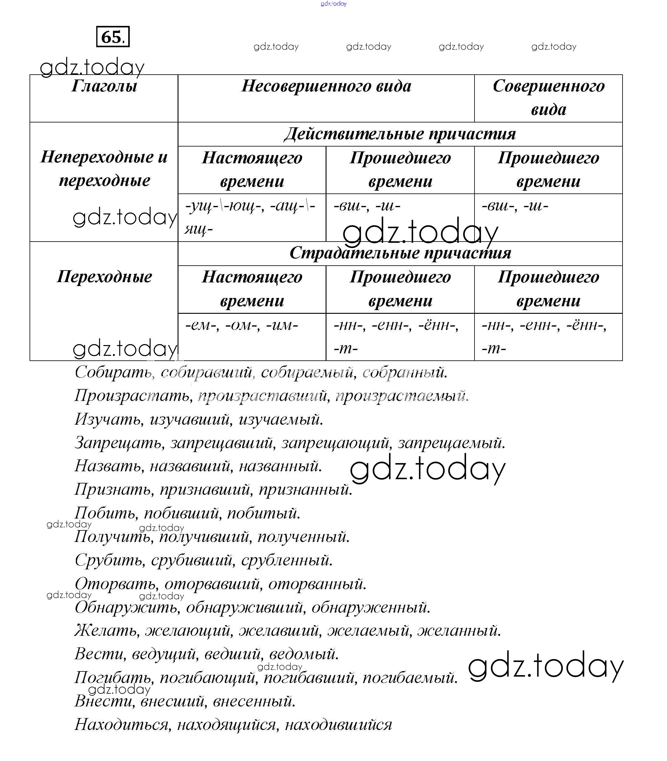 На страницах сайта gdz.today вы найдете учебный и вспомогательный материал, направленный на улучшения знаний школьной программы. ГДЗ - онлайн мир знаний Решение к главе 1 65 Учебнику по Русскому языку для 7 класса Шмелёв, Флоренская Вентана-граф Алгоритм успеха 2016