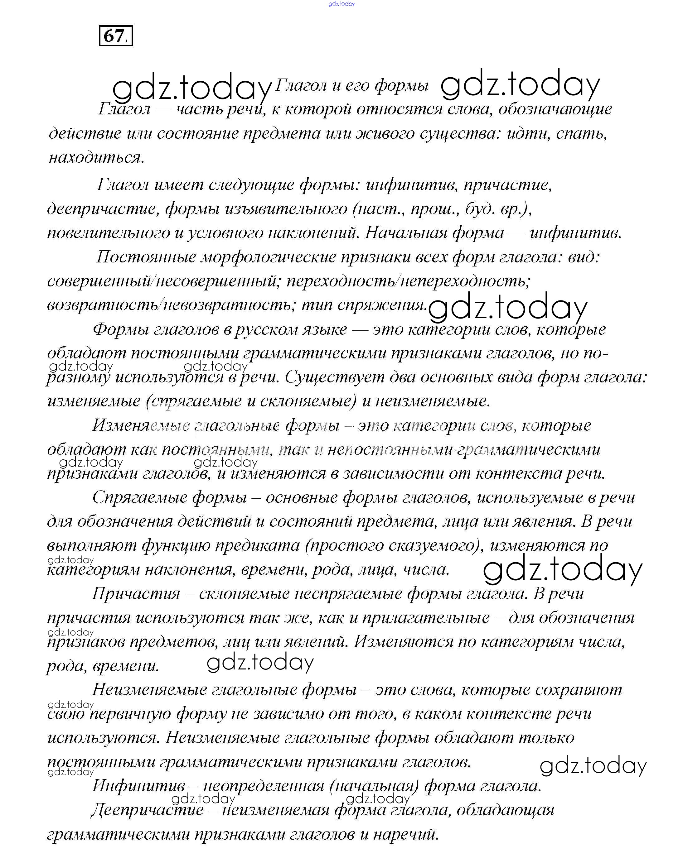 На страницах сайта gdz.today вы найдете учебный и вспомогательный материал, направленный на улучшения знаний школьной программы. ГДЗ - онлайн мир знаний Решение к главе 1 67 Учебнику по Русскому языку для 7 класса Шмелёв, Флоренская Вентана-граф Алгоритм успеха 2016