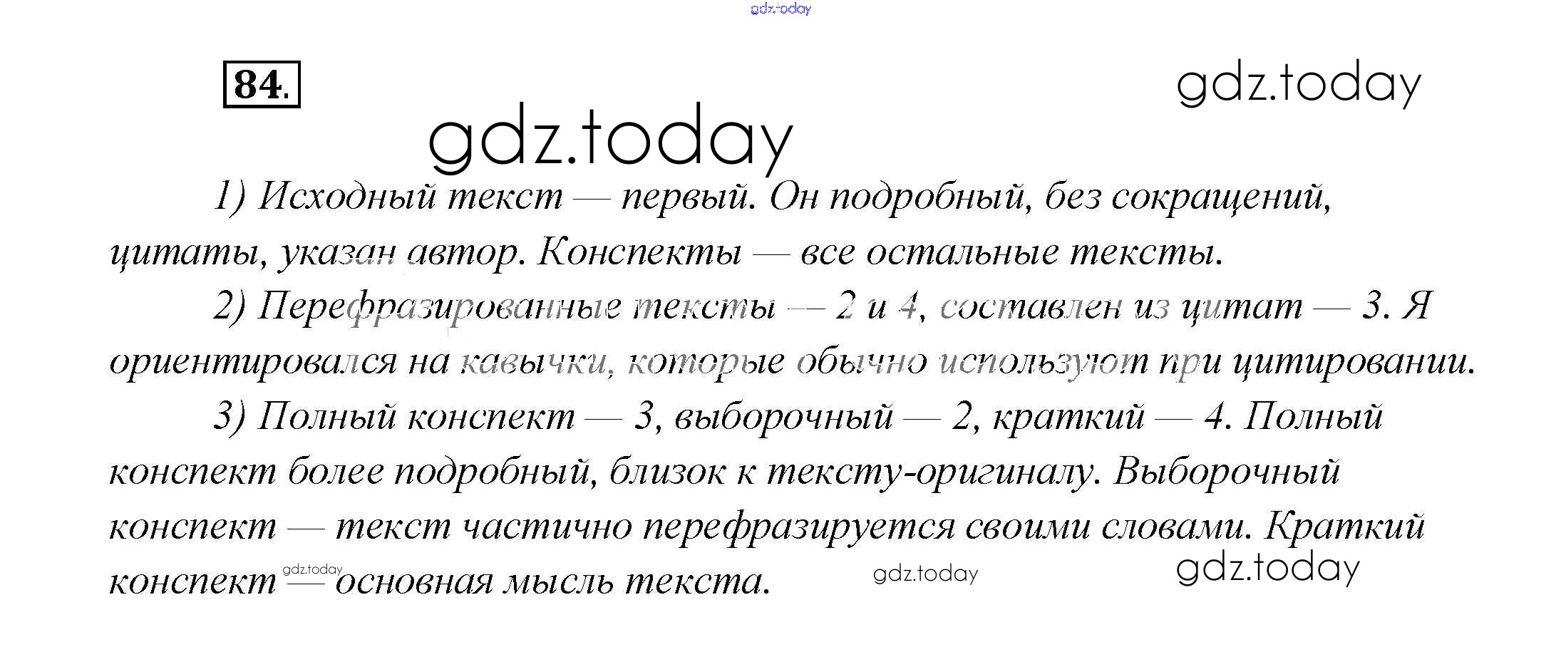 На страницах сайта gdz.today вы найдете учебный и вспомогательный материал, направленный на улучшения знаний школьной программы. ГДЗ - онлайн мир знаний Решение к главе 2 84 Учебнику по Русскому языку для 7 класса Шмелёв, Флоренская Вентана-граф Алгоритм успеха 2016
