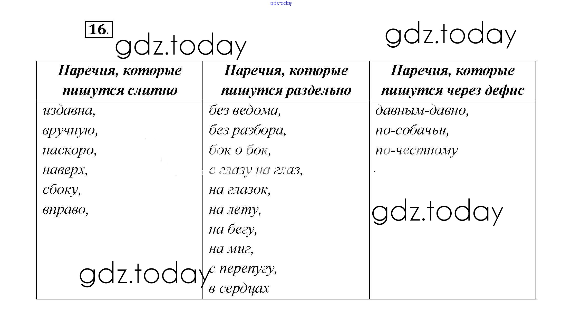На страницах сайта gdz.today вы найдете учебный и вспомогательный материал, направленный на улучшения знаний школьной программы. ГДЗ - онлайн мир знаний Решение к главе 3 16 Учебнику по Русскому языку для 7 класса Шмелёв, Флоренская Вентана-граф Алгоритм успеха 2016