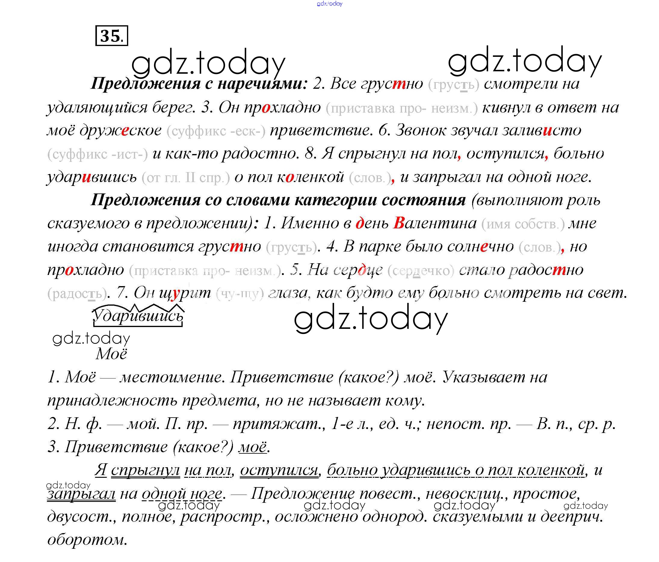 На страницах сайта gdz.today вы найдете учебный и вспомогательный материал, направленный на улучшения знаний школьной программы. ГДЗ - онлайн мир знаний Решение к главе 3 35 Учебнику по Русскому языку для 7 класса Шмелёв, Флоренская Вентана-граф Алгоритм успеха 2016