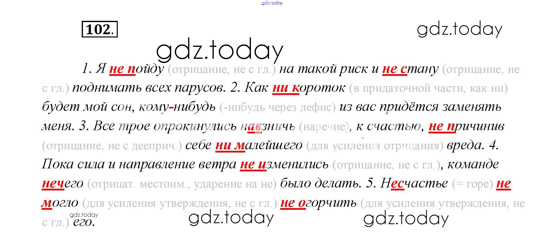 На страницах сайта gdz.today вы найдете учебный и вспомогательный материал, направленный на улучшения знаний школьной программы. ГДЗ - онлайн мир знаний Решение к главе 4 102 Учебнику по Русскому языку для 7 класса Шмелёв, Флоренская Вентана-граф Алгоритм успеха 2016