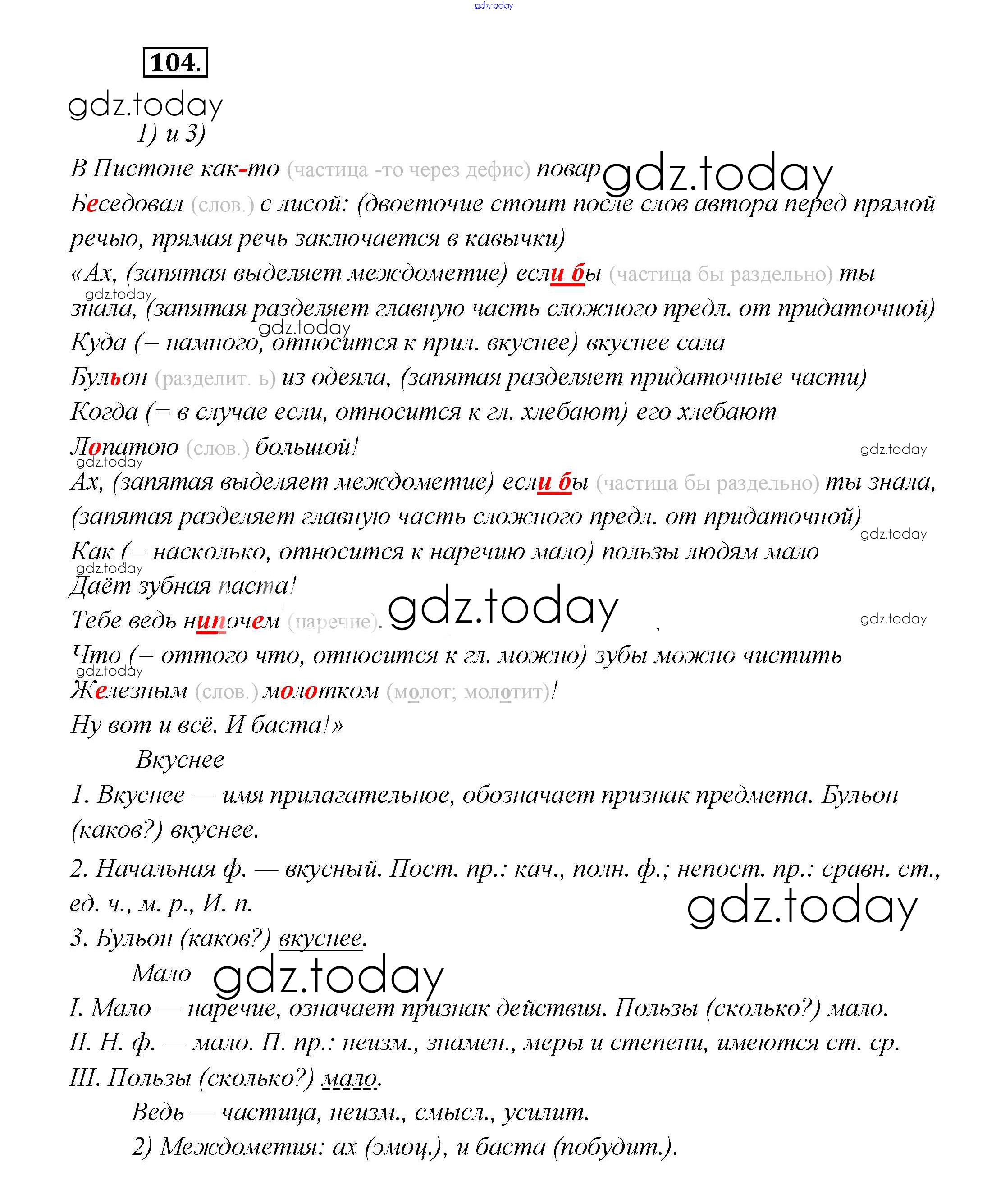 На страницах сайта gdz.today вы найдете учебный и вспомогательный материал, направленный на улучшения знаний школьной программы. ГДЗ - онлайн мир знаний Решение к главе 4 104 Учебнику по Русскому языку для 7 класса Шмелёв, Флоренская Вентана-граф Алгоритм успеха 2016