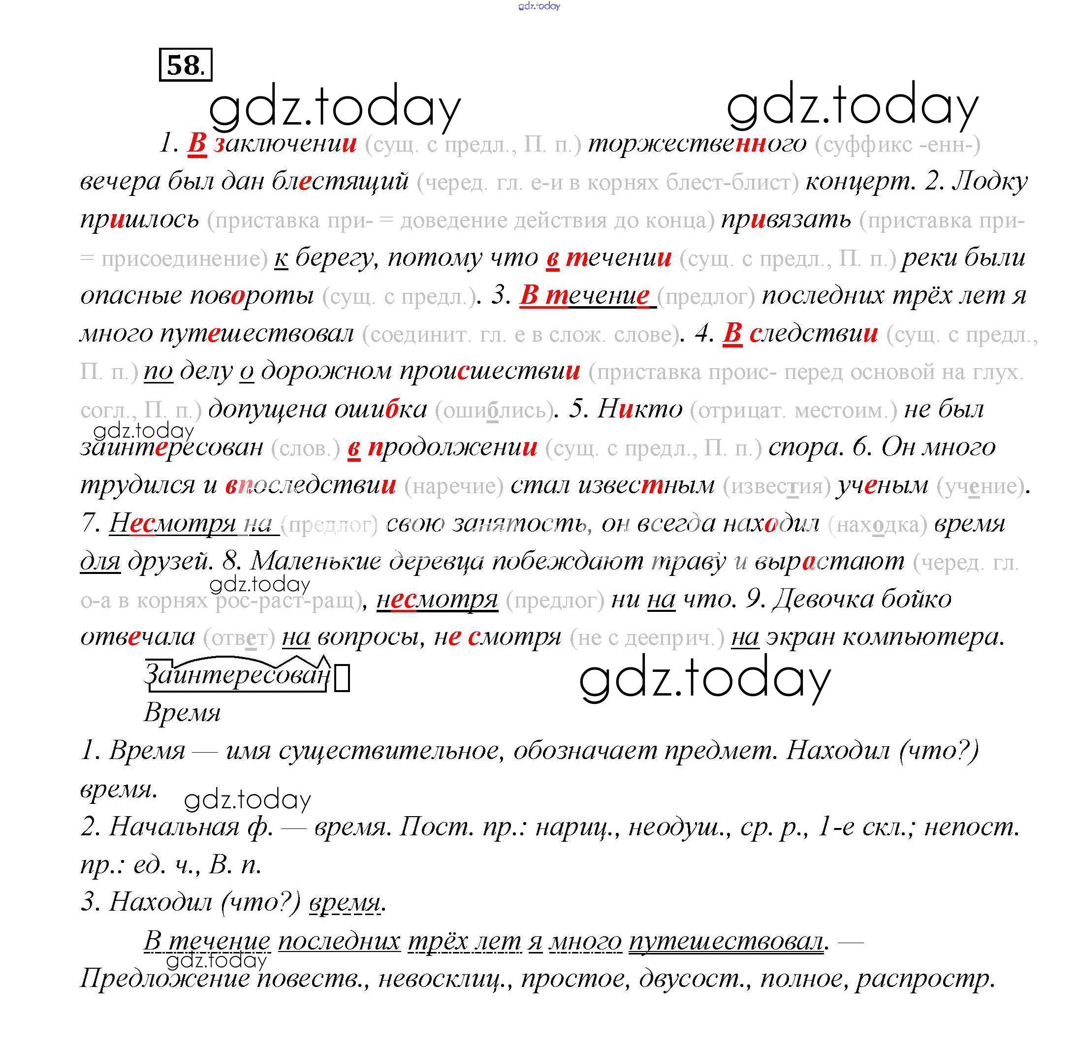 На страницах сайта gdz.today вы найдете учебный и вспомогательный материал, направленный на улучшения знаний школьной программы. ГДЗ - онлайн мир знаний Решение к главе 4 58 Учебнику по Русскому языку для 7 класса Шмелёв, Флоренская Вентана-граф Алгоритм успеха 2016