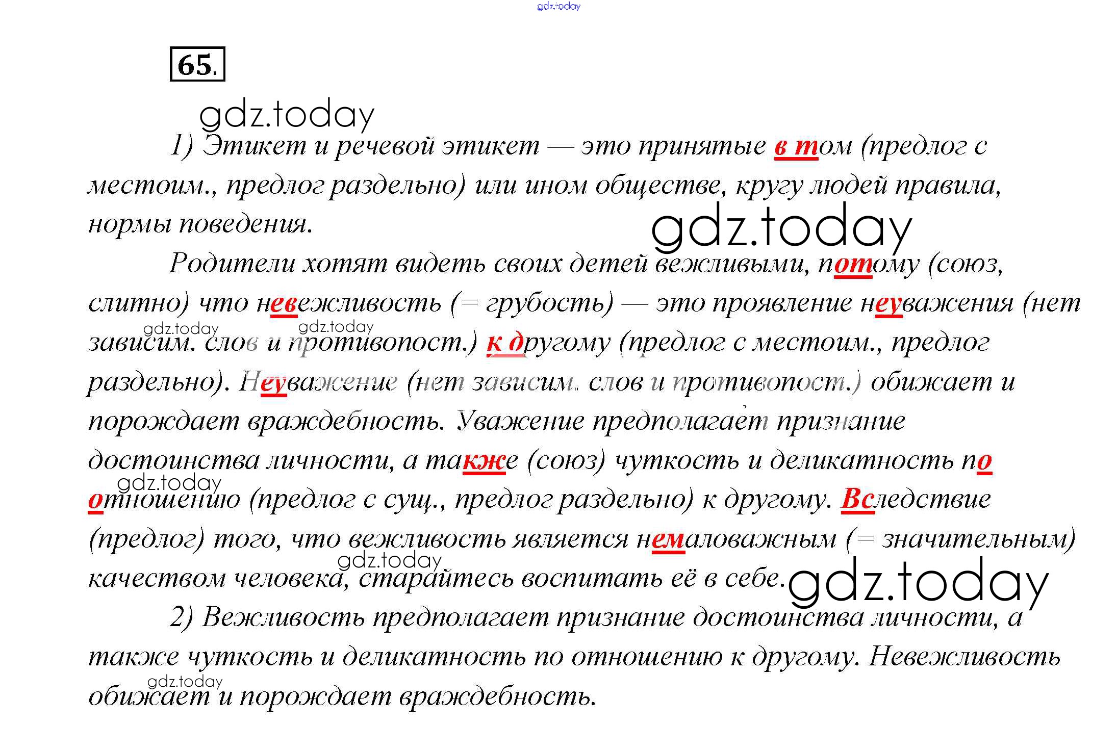 На страницах сайта gdz.today вы найдете учебный и вспомогательный материал, направленный на улучшения знаний школьной программы. ГДЗ - онлайн мир знаний Решение к главе 4 65 Учебнику по Русскому языку для 7 класса Шмелёв, Флоренская Вентана-граф Алгоритм успеха 2016