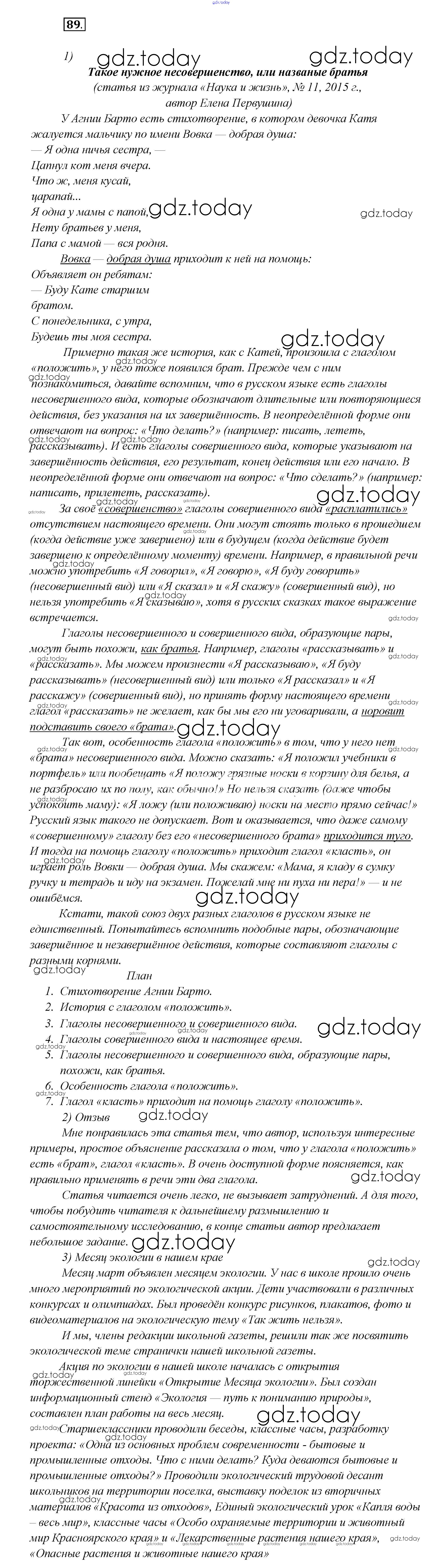 На страницах сайта gdz.today вы найдете учебный и вспомогательный материал, направленный на улучшения знаний школьной программы. ГДЗ - онлайн мир знаний Решение к главе 4 89 Учебнику по Русскому языку для 7 класса Шмелёв, Флоренская Вентана-граф Алгоритм успеха 2016