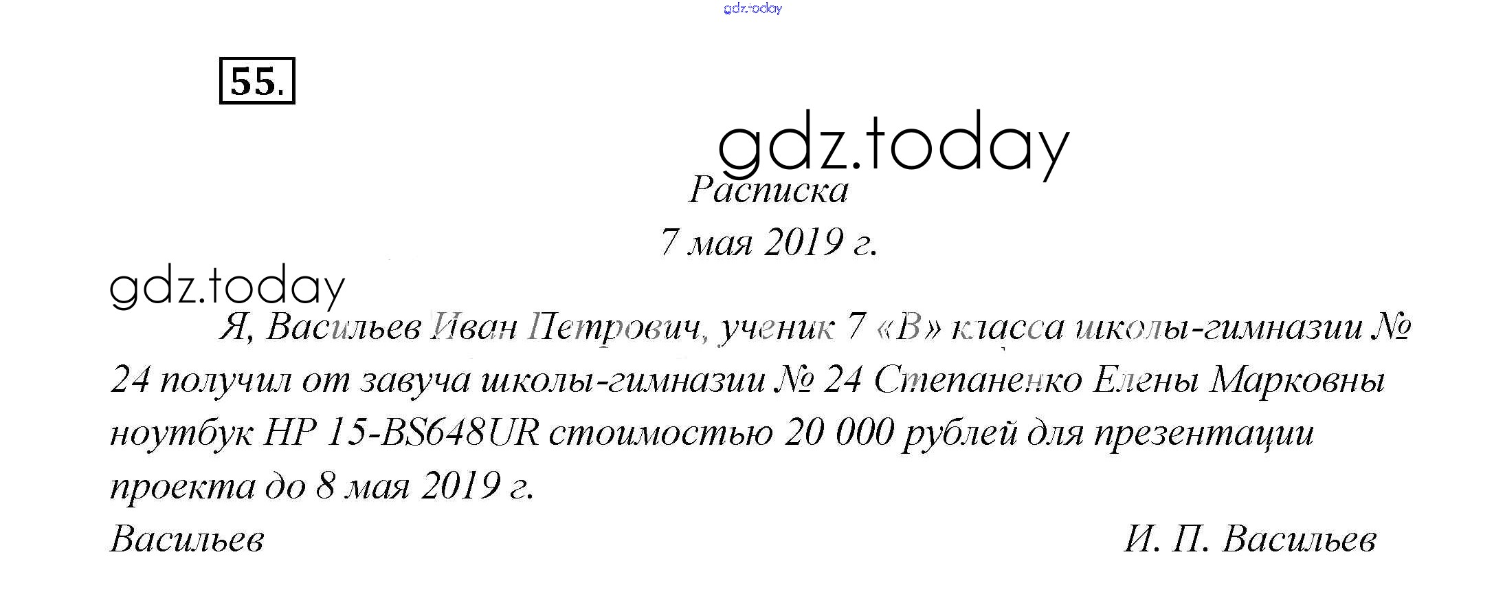 На страницах сайта gdz.today вы найдете учебный и вспомогательный материал, направленный на улучшения знаний школьной программы. ГДЗ - онлайн мир знаний Решение к главе 5 55 Учебнику по Русскому языку для 7 класса Шмелёв, Флоренская Вентана-граф Алгоритм успеха 2016