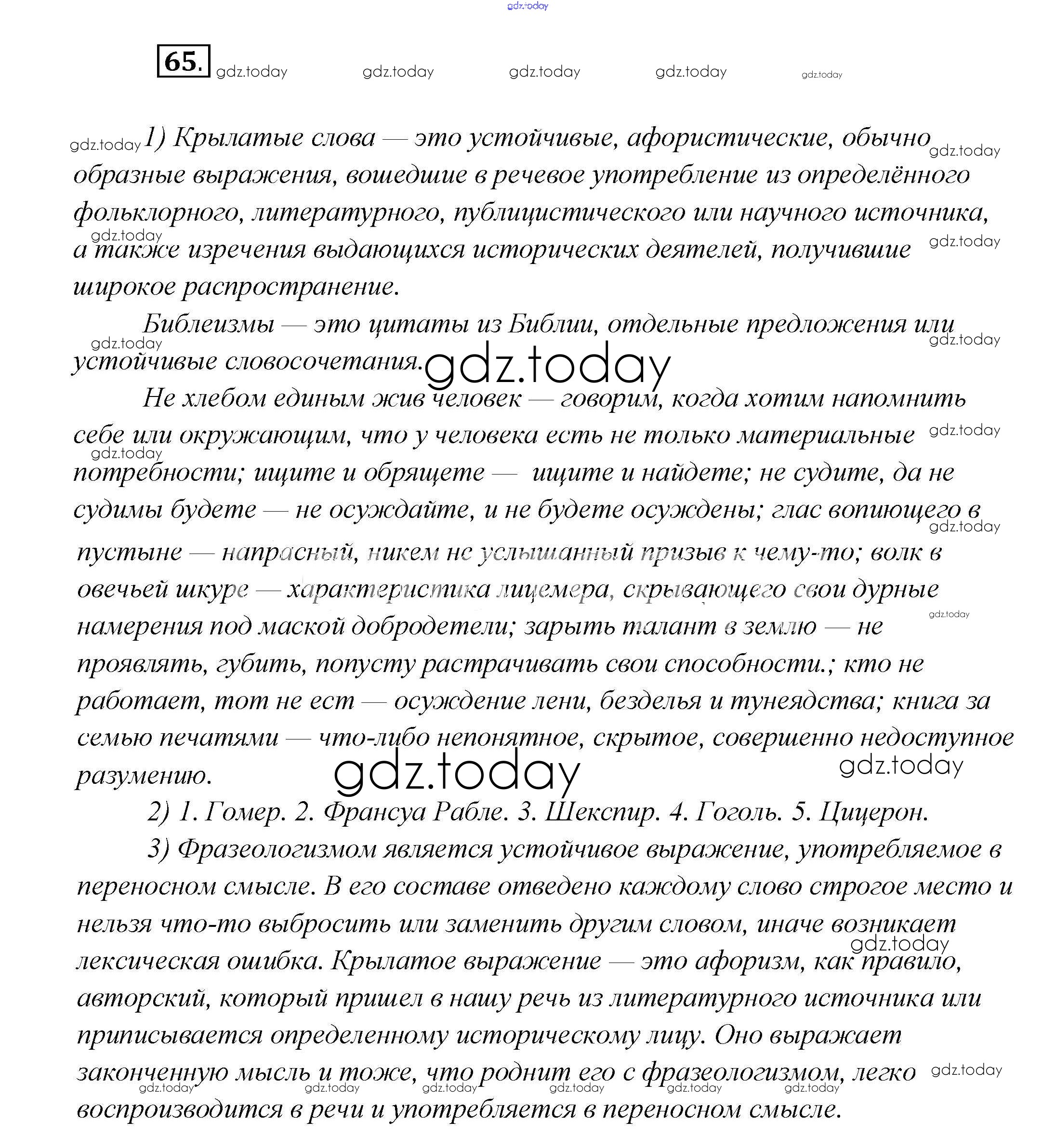 На страницах сайта gdz.today вы найдете учебный и вспомогательный материал, направленный на улучшения знаний школьной программы. ГДЗ - онлайн мир знаний Решение к главе 5 65 Учебнику по Русскому языку для 7 класса Шмелёв, Флоренская Вентана-граф Алгоритм успеха 2016