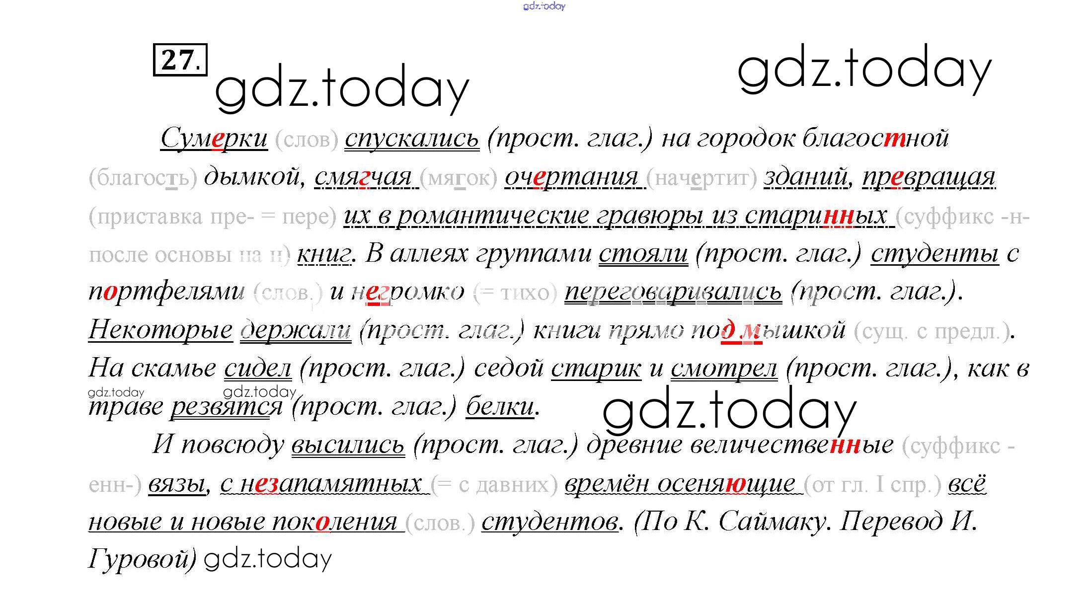 На страницах сайта gdz.today вы найдете учебный и вспомогательный материал, направленный на улучшения знаний школьной программы. ГДЗ - онлайн мир знаний Решение к главе 6 27 Учебнику по Русскому языку для 7 класса Шмелёв, Флоренская Вентана-граф Алгоритм успеха 2016