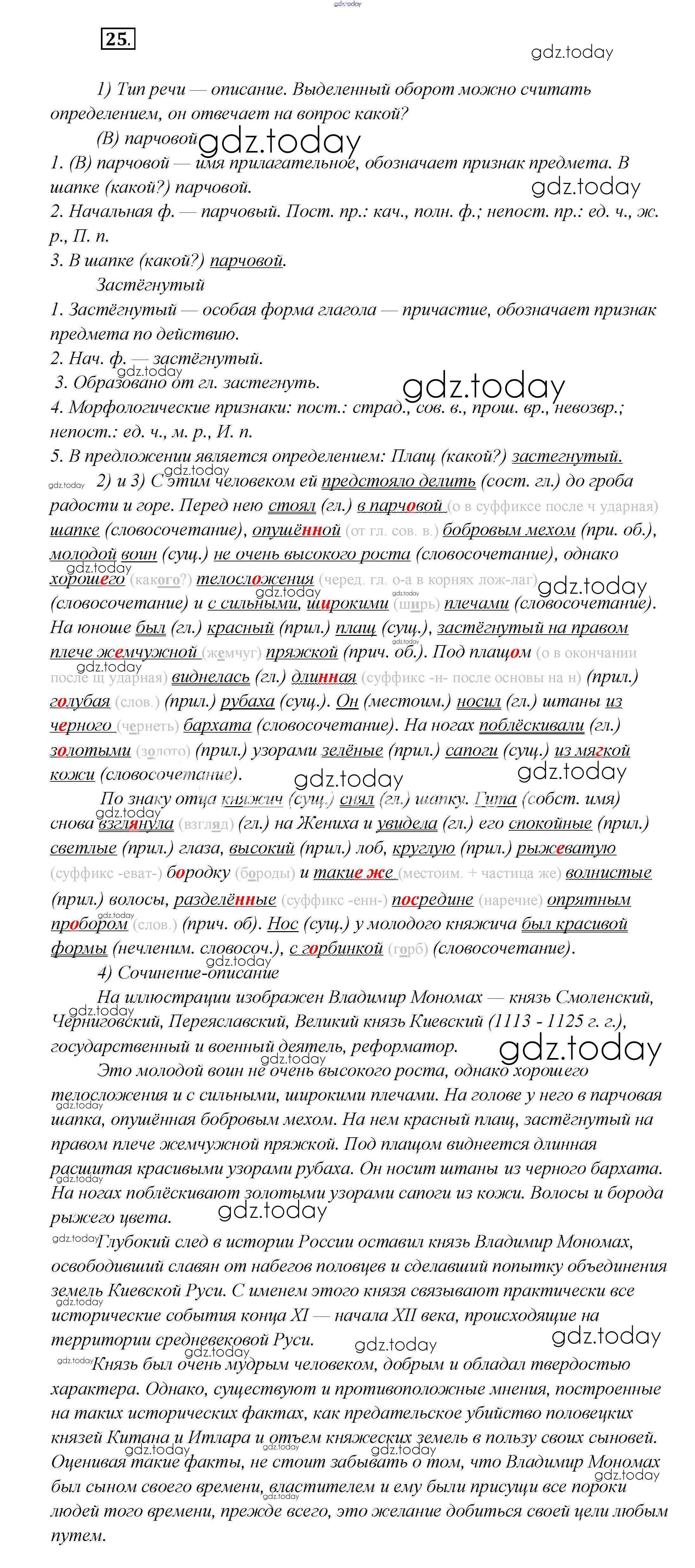 На страницах сайта gdz.today вы найдете учебный и вспомогательный материал, направленный на улучшения знаний школьной программы. ГДЗ - онлайн мир знаний Решение к главе 7 25 Учебнику по Русскому языку для 7 класса Шмелёв, Флоренская Вентана-граф Алгоритм успеха 2016