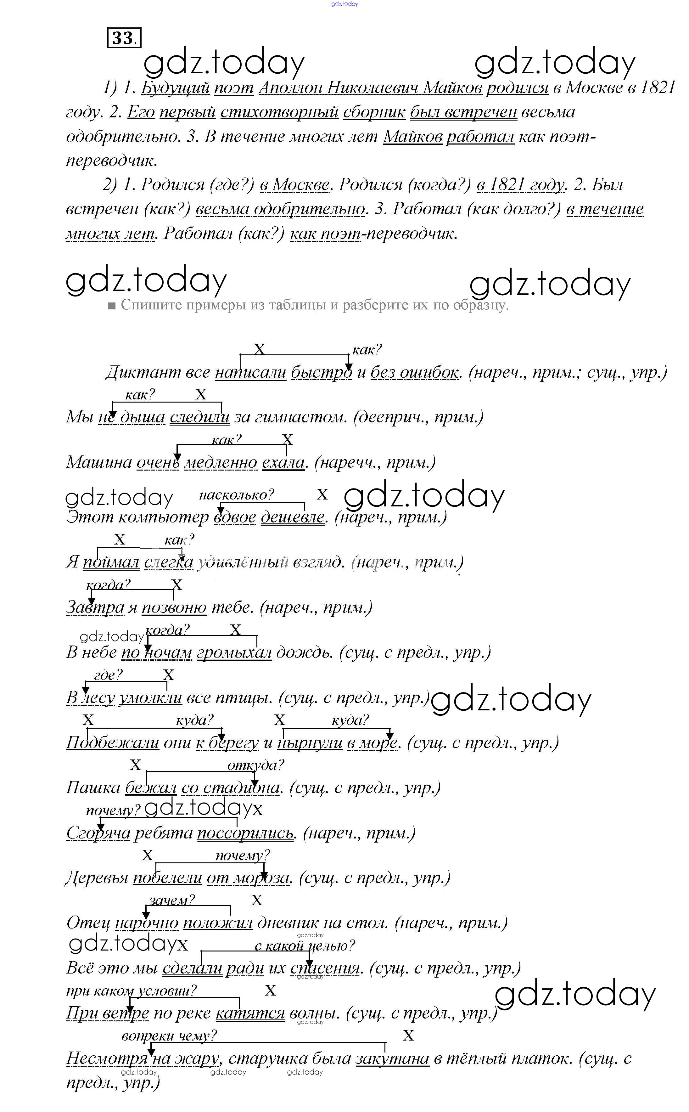 На страницах сайта gdz.today вы найдете учебный и вспомогательный материал, направленный на улучшения знаний школьной программы. ГДЗ - онлайн мир знаний Решение к главе 7 33 Учебнику по Русскому языку для 7 класса Шмелёв, Флоренская Вентана-граф Алгоритм успеха 2016