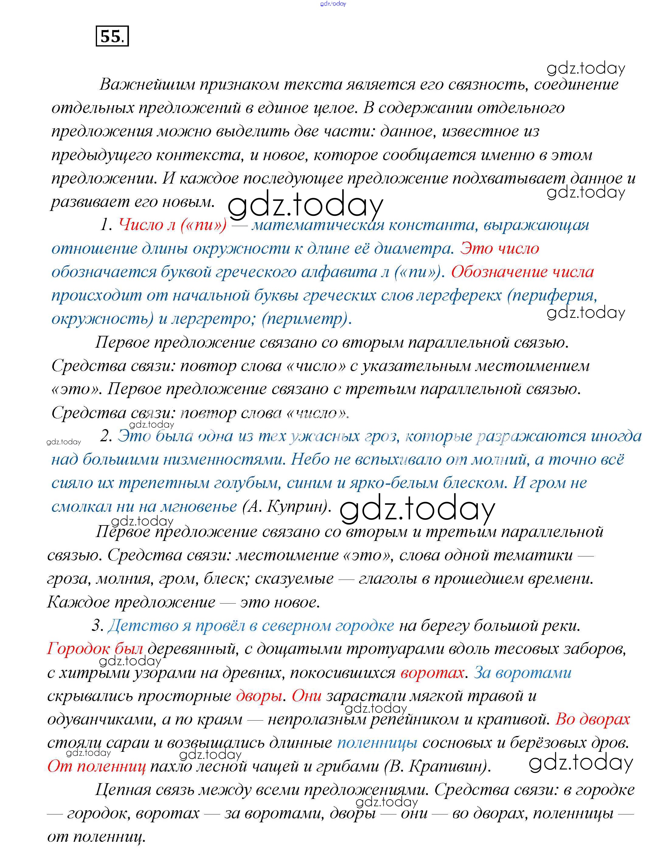 На страницах сайта gdz.today вы найдете учебный и вспомогательный материал, направленный на улучшения знаний школьной программы. ГДЗ - онлайн мир знаний Решение к главе 7 55 Учебнику по Русскому языку для 7 класса Шмелёв, Флоренская Вентана-граф Алгоритм успеха 2016
