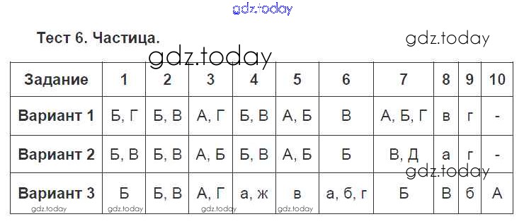 Ответы к Решение к тестовым заданиям Тест №6. Частица Тестовым заданиям по Русскому языку для 7 класса Малюшкин, Иконницкая Сфера Сферы 2020