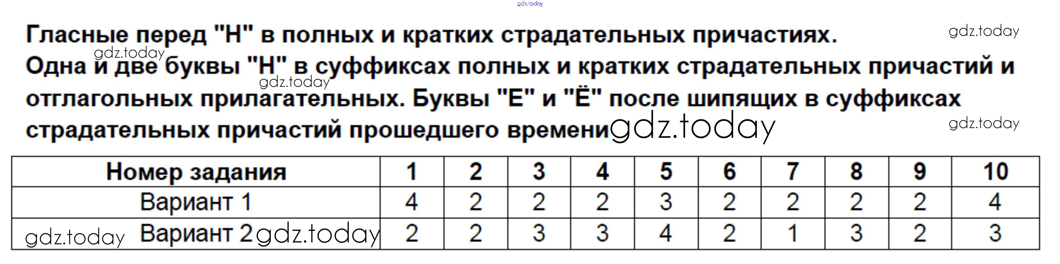 Ответы к Часть 1. Решение к тестам Тест № 10. Гласные перед Н в полных и кратких страдательных причастиях Тестам по Русскому языку для 7 класса Селезнева Экзамен УМК 2014
