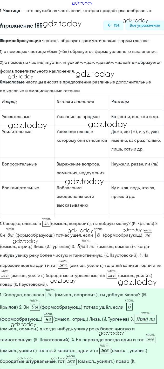 На страницах сайта gdz.today вы найдете учебный и вспомогательный материал, направленный на улучшения знаний школьной программы. ГДЗ - онлайн мир знаний Упражнения (решение) 195 Рабочей тетради по Русскому языку для 7 класса Янченко, Латфуллина Просвещение, Просвещение 2017, 2022