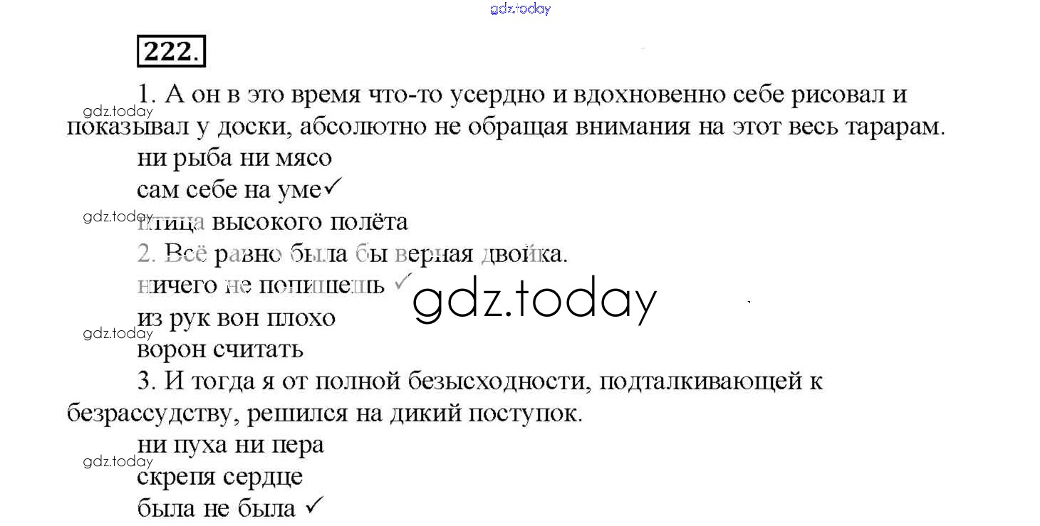 На страницах сайта gdz.today вы найдете учебный и вспомогательный материал, направленный на улучшения знаний школьной программы. ГДЗ - онлайн мир знаний Упражнения (решение) 222 Рабочей тетради по Русскому языку для 7 класса Янченко, Латфуллина Просвещение, Просвещение 2017, 2022