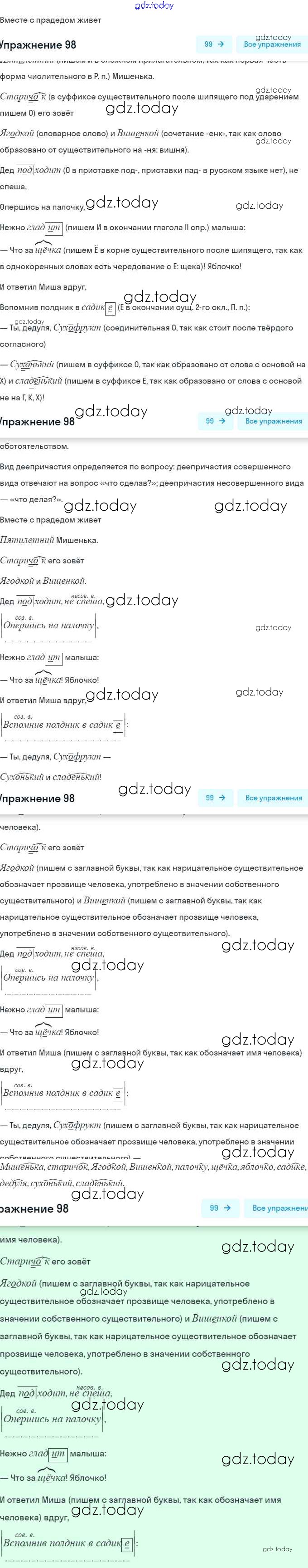 На страницах сайта gdz.today вы найдете учебный и вспомогательный материал, направленный на улучшения знаний школьной программы. ГДЗ - онлайн мир знаний Упражнения (решение) 98 Рабочей тетради по Русскому языку для 7 класса Янченко, Латфуллина Просвещение, Просвещение 2017, 2022