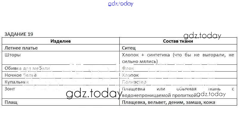 На страницах сайта gdz.today вы найдете учебный и вспомогательный материал, направленный на улучшения знаний школьной программы. ГДЗ - онлайн мир знаний Задания (решение) 19 Рабочей тетради по Технологии для 7 класса Синица Вентана-граф 2014
