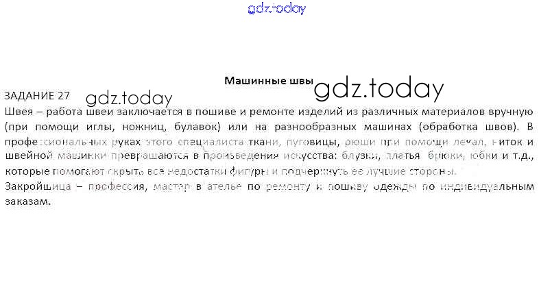 На страницах сайта gdz.today вы найдете учебный и вспомогательный материал, направленный на улучшения знаний школьной программы. ГДЗ - онлайн мир знаний Задания (решение) 27 Рабочей тетради по Технологии для 7 класса Синица Вентана-граф 2014