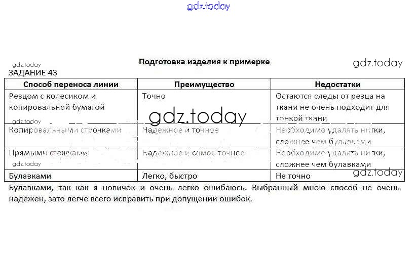 На страницах сайта gdz.today вы найдете учебный и вспомогательный материал, направленный на улучшения знаний школьной программы. ГДЗ - онлайн мир знаний Задания (решение) 43 Рабочей тетради по Технологии для 7 класса Синица Вентана-граф 2014
