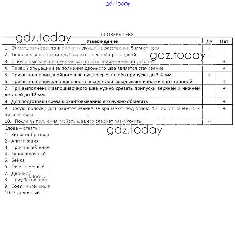 На страницах сайта gdz.today вы найдете учебный и вспомогательный материал, направленный на улучшения знаний школьной программы. ГДЗ - онлайн мир знаний Проверь себя (решение) 7 Рабочей тетради по Технологии для 7 класса Синица Вентана-граф 2014