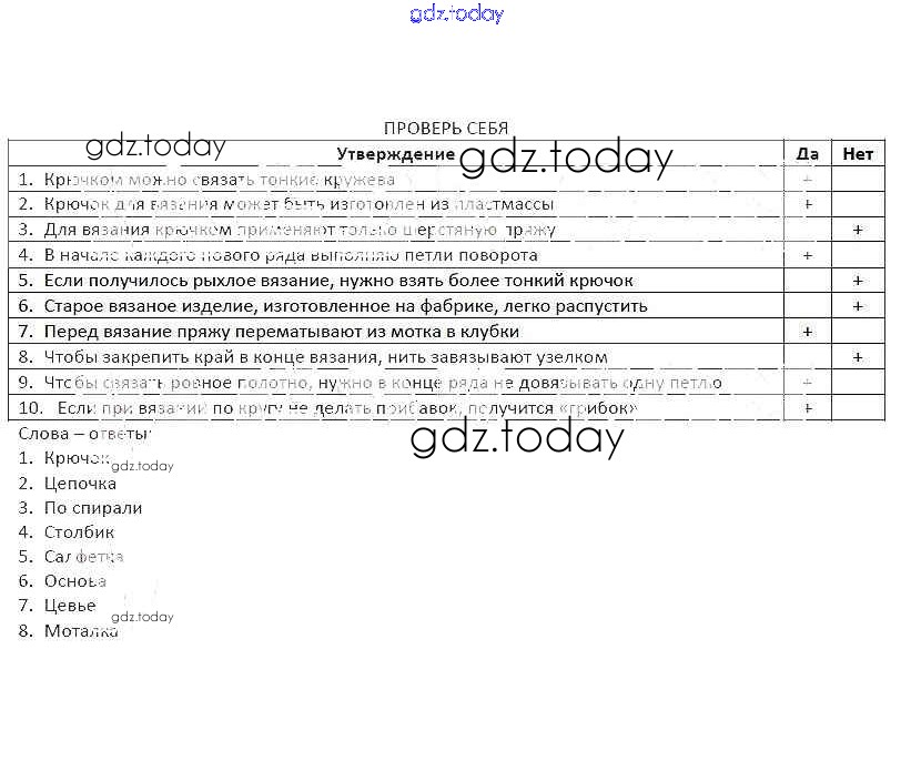 На страницах сайта gdz.today вы найдете учебный и вспомогательный материал, направленный на улучшения знаний школьной программы. ГДЗ - онлайн мир знаний Проверь себя (решение) 9 Рабочей тетради по Технологии для 7 класса Синица Вентана-граф 2014