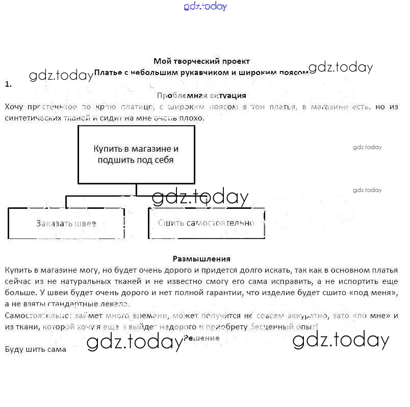 На страницах сайта gdz.today вы найдете учебный и вспомогательный материал, направленный на улучшения знаний школьной программы. ГДЗ - онлайн мир знаний Мой творческий проект (решение) 1 Рабочей тетради по Технологии для 7 класса Синица Вентана-граф 2014