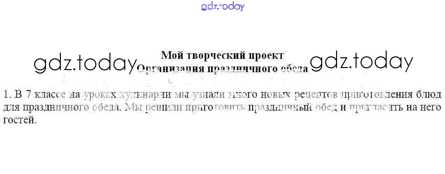 На страницах сайта gdz.today вы найдете учебный и вспомогательный материал, направленный на улучшения знаний школьной программы. ГДЗ - онлайн мир знаний Организация праздничного обеда (решение) 1 Рабочей тетради по Технологии для 7 класса Синица Вентана-граф Алгоритм успеха 2018