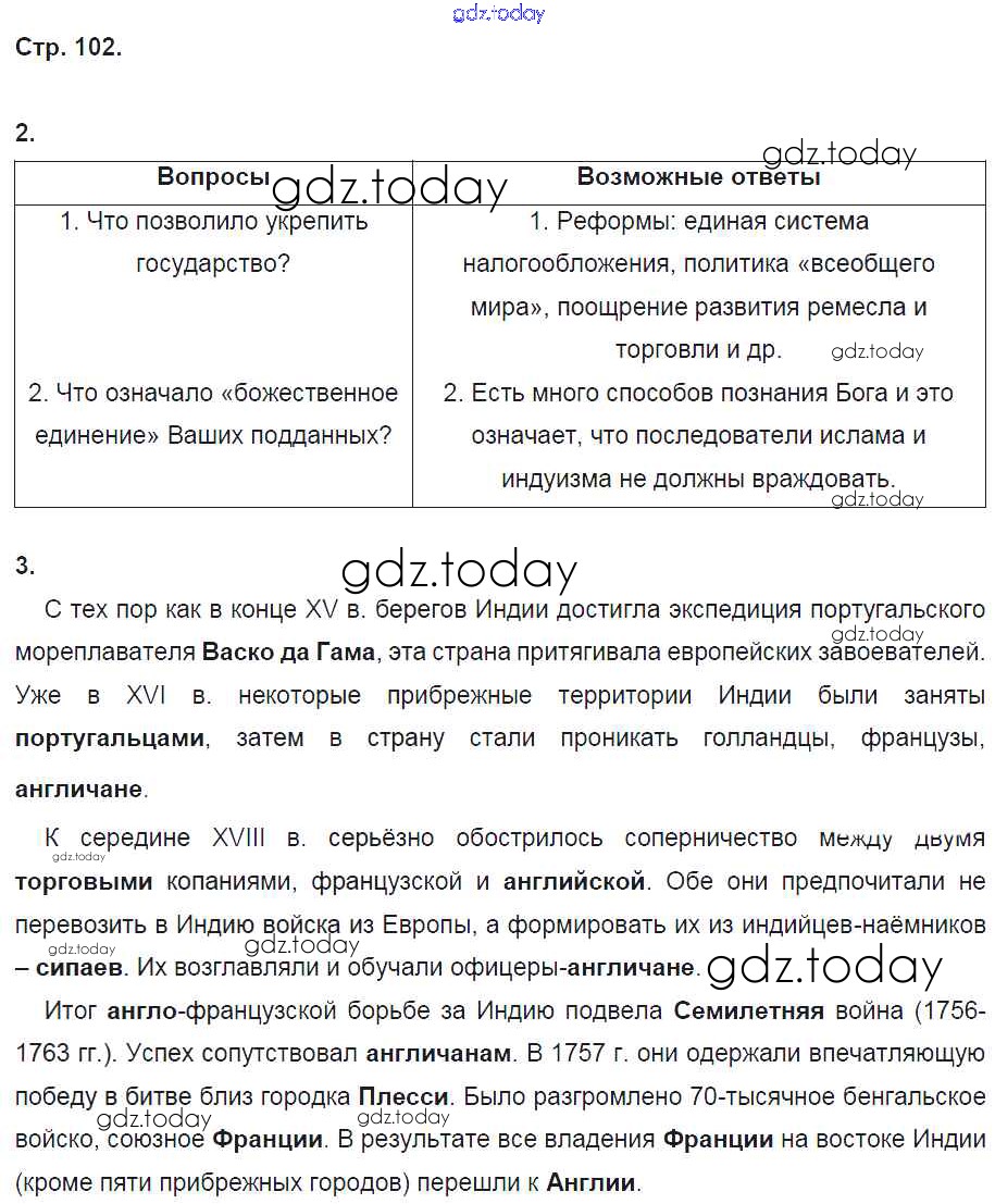 На страницах сайта gdz.today вы найдете учебный и вспомогательный материал, направленный на улучшения знаний школьной программы. ГДЗ - онлайн мир знаний Страницы (решение) 102 Рабочей тетради по Всеобщей истории для 7 класса Баранов Вентана-граф Алгоритм успеха 2015