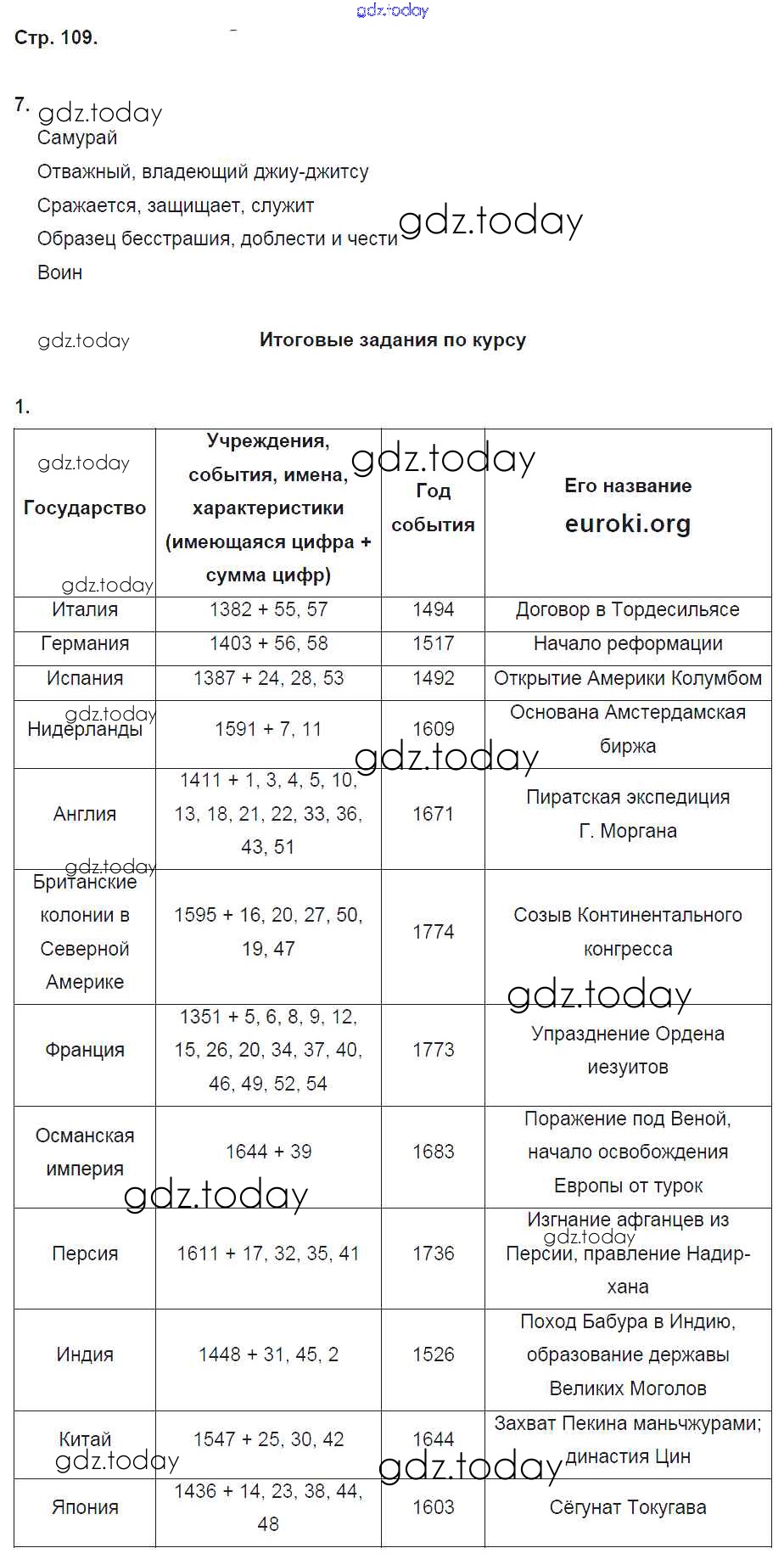 На страницах сайта gdz.today вы найдете учебный и вспомогательный материал, направленный на улучшения знаний школьной программы. ГДЗ - онлайн мир знаний Страницы (решение) 109 Рабочей тетради по Всеобщей истории для 7 класса Баранов Вентана-граф Алгоритм успеха 2015