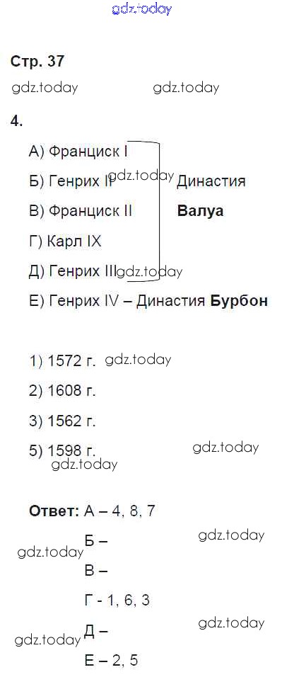 На страницах сайта gdz.today вы найдете учебный и вспомогательный материал, направленный на улучшения знаний школьной программы. ГДЗ - онлайн мир знаний Страницы (решение) 37 Рабочей тетради по Всеобщей истории для 7 класса Баранов Вентана-граф Алгоритм успеха 2015