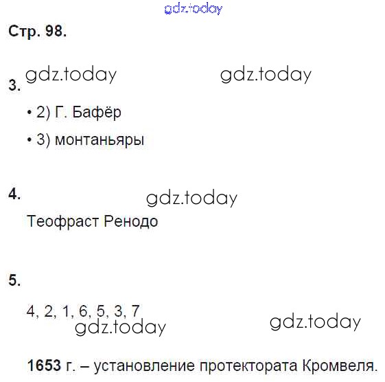 На страницах сайта gdz.today вы найдете учебный и вспомогательный материал, направленный на улучшения знаний школьной программы. ГДЗ - онлайн мир знаний Страницы (решение) 98 Рабочей тетради по Всеобщей истории для 7 класса Баранов Вентана-граф Алгоритм успеха 2015