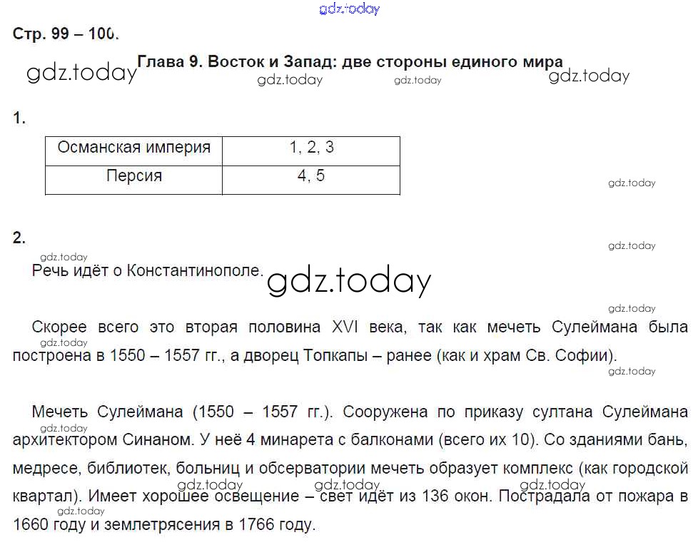 На страницах сайта gdz.today вы найдете учебный и вспомогательный материал, направленный на улучшения знаний школьной программы. ГДЗ - онлайн мир знаний Страницы (решение) 100 Рабочей тетради по Всеобщей истории для 7 класса Стецюра Русское слово Инновационная школа 2017