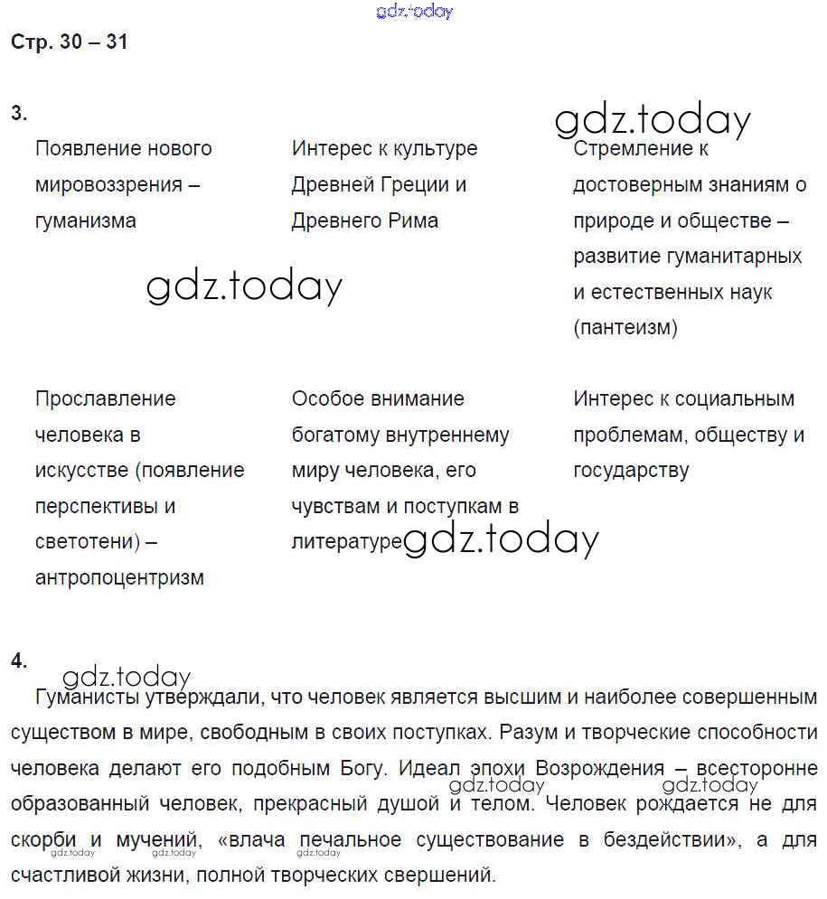 На страницах сайта gdz.today вы найдете учебный и вспомогательный материал, направленный на улучшения знаний школьной программы. ГДЗ - онлайн мир знаний Страницы (решение) 30 Рабочей тетради по Всеобщей истории для 7 класса Стецюра Русское слово Инновационная школа 2017