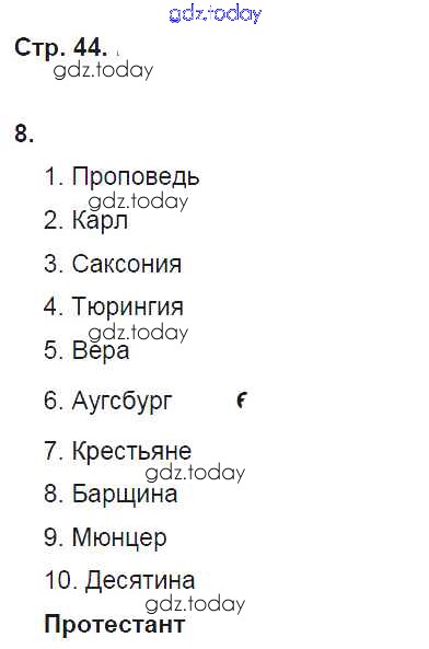 На страницах сайта gdz.today вы найдете учебный и вспомогательный материал, направленный на улучшения знаний школьной программы. ГДЗ - онлайн мир знаний Страницы (решение) 44 Рабочей тетради по Всеобщей истории для 7 класса Стецюра Русское слово Инновационная школа 2017