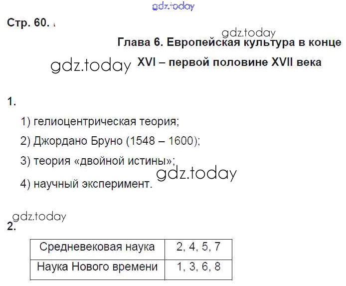 На страницах сайта gdz.today вы найдете учебный и вспомогательный материал, направленный на улучшения знаний школьной программы. ГДЗ - онлайн мир знаний Страницы (решение) 60 Рабочей тетради по Всеобщей истории для 7 класса Стецюра Русское слово Инновационная школа 2017