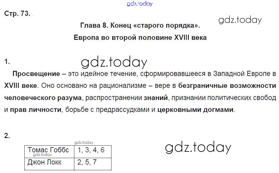 На страницах сайта gdz.today вы найдете учебный и вспомогательный материал, направленный на улучшения знаний школьной программы. ГДЗ - онлайн мир знаний Страницы (решение) 73 Рабочей тетради по Всеобщей истории для 7 класса Стецюра Русское слово Инновационная школа 2017