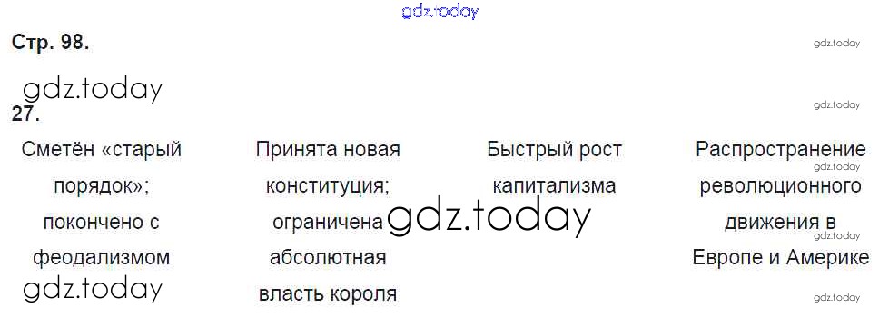 На страницах сайта gdz.today вы найдете учебный и вспомогательный материал, направленный на улучшения знаний школьной программы. ГДЗ - онлайн мир знаний Страницы (решение) 98 Рабочей тетради по Всеобщей истории для 7 класса Стецюра Русское слово Инновационная школа 2017