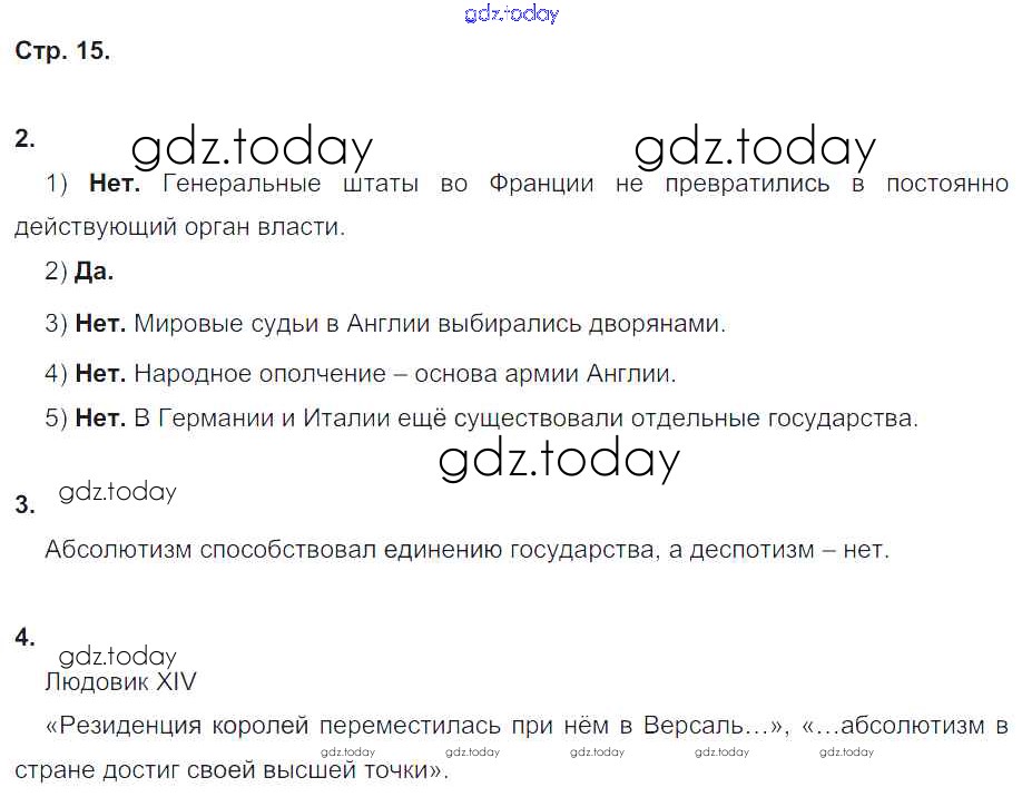На страницах сайта gdz.today вы найдете учебный и вспомогательный материал, направленный на улучшения знаний школьной программы. ГДЗ - онлайн мир знаний Решение. Часть 1. Страницы 15 Рабочей тетради по Всеобщей истории для 7 класса Юдовская, Ванюшкина Просвещение УМК 2015