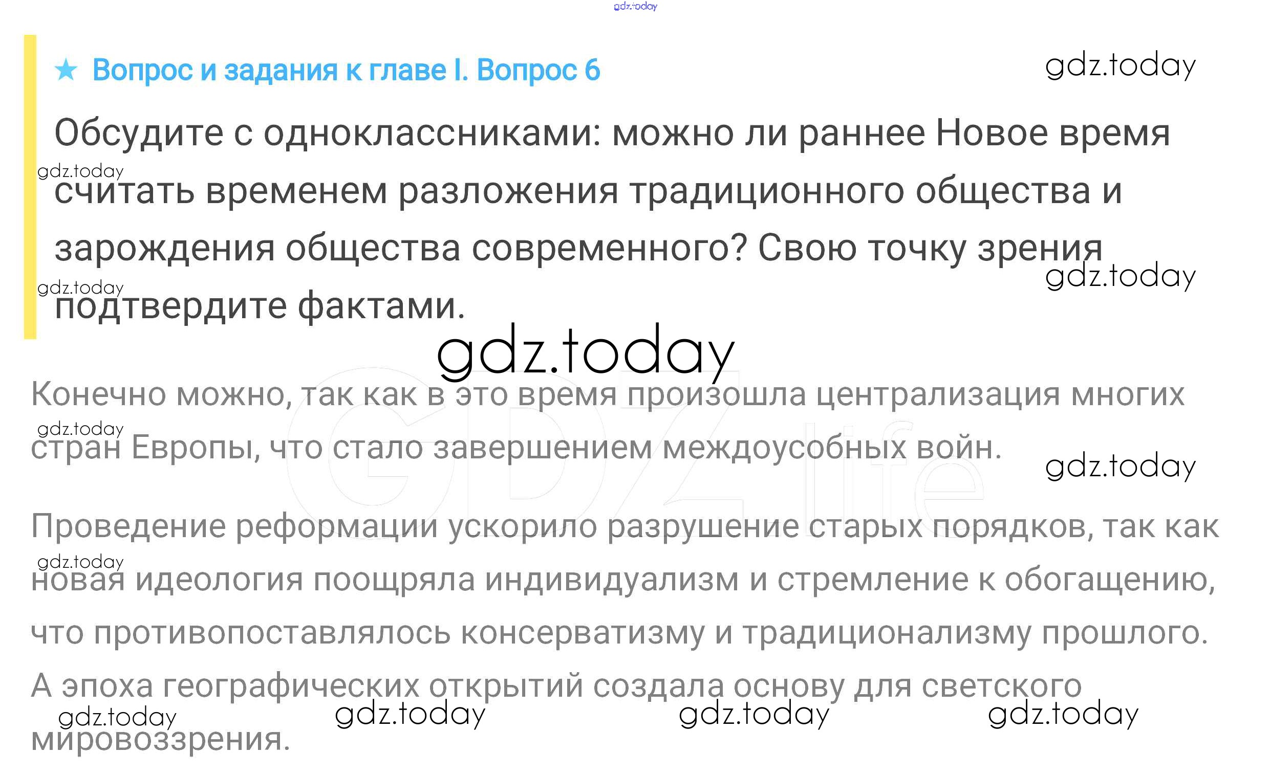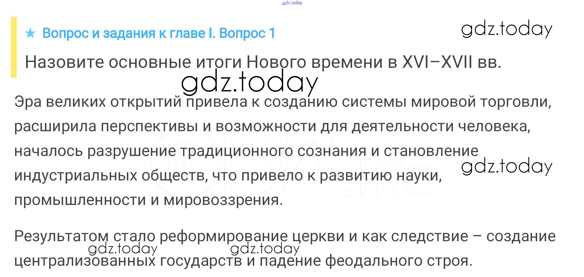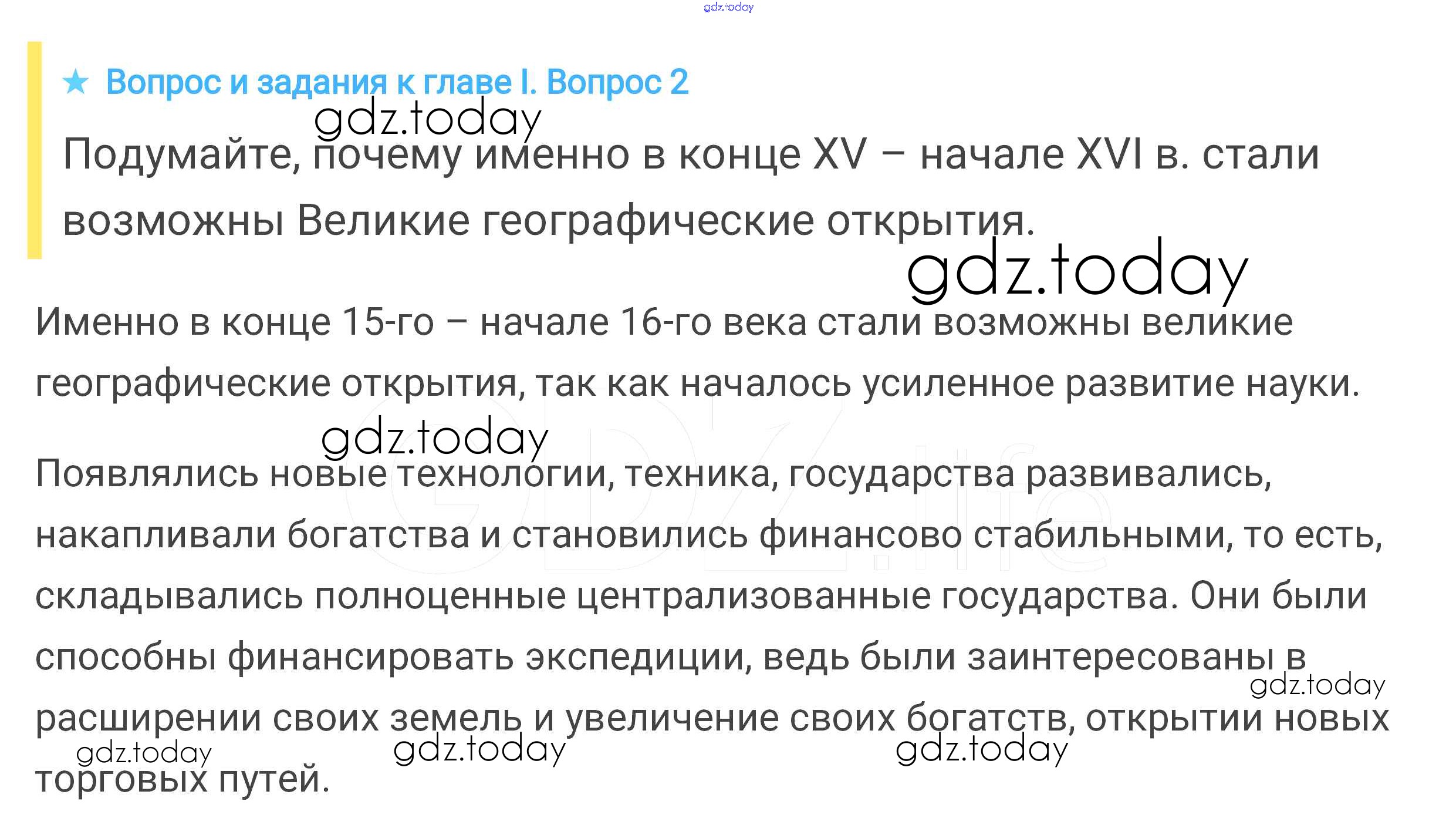 На страницах сайта gdz.today вы найдете учебный и вспомогательный материал, направленный на улучшения знаний школьной программы. ГДЗ - онлайн мир знаний Вопросы к главе (решение) 1 Учебнику по Всеобщей истории для 7 класса Юдовская, Баранов Просвещение 2014