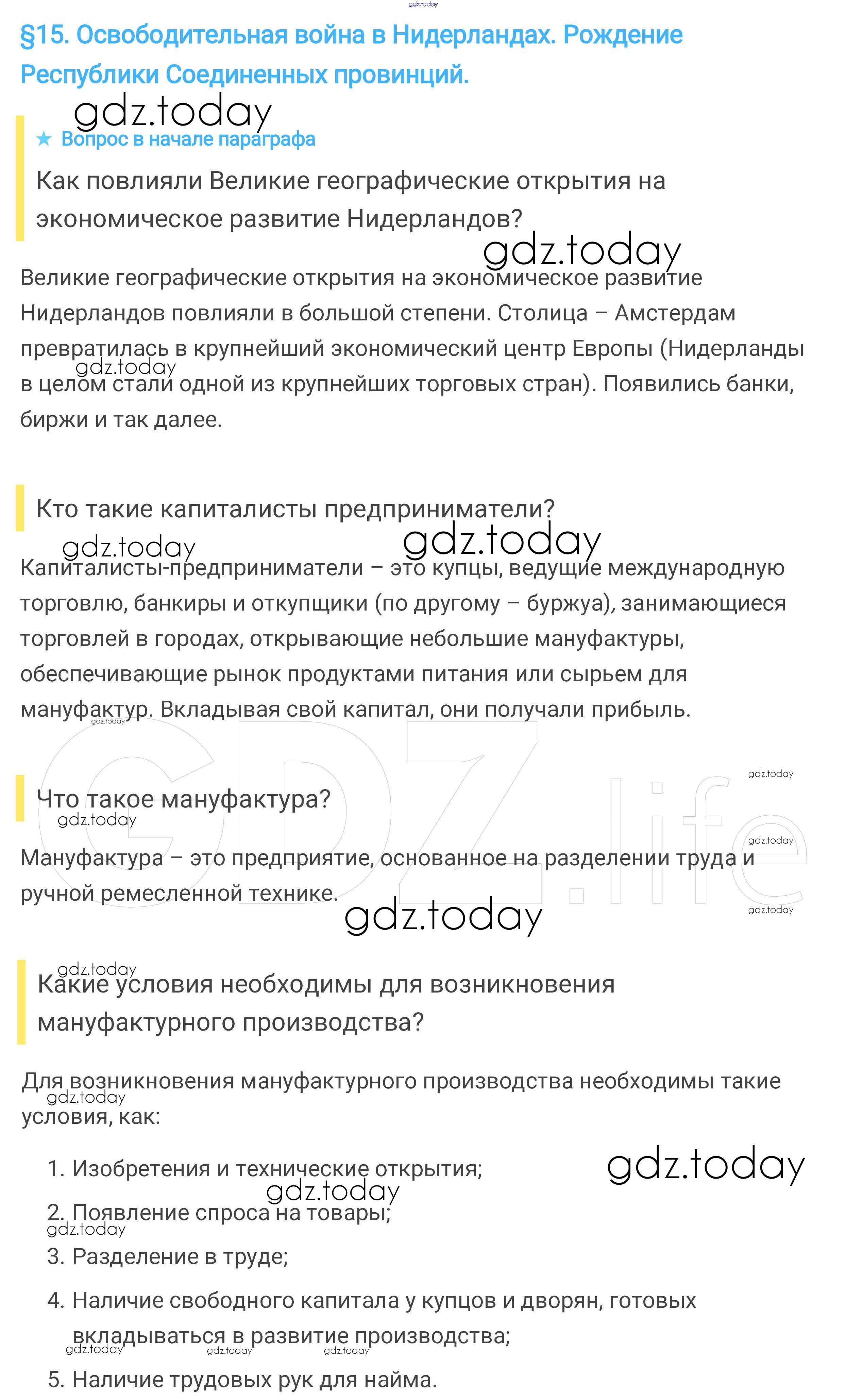 На страницах сайта gdz.today вы найдете учебный и вспомогательный материал, направленный на улучшения знаний школьной программы. ГДЗ - онлайн мир знаний Параграфы (решение) 15 Учебнику по Всеобщей истории для 7 класса Юдовская, Баранов Просвещение 2014