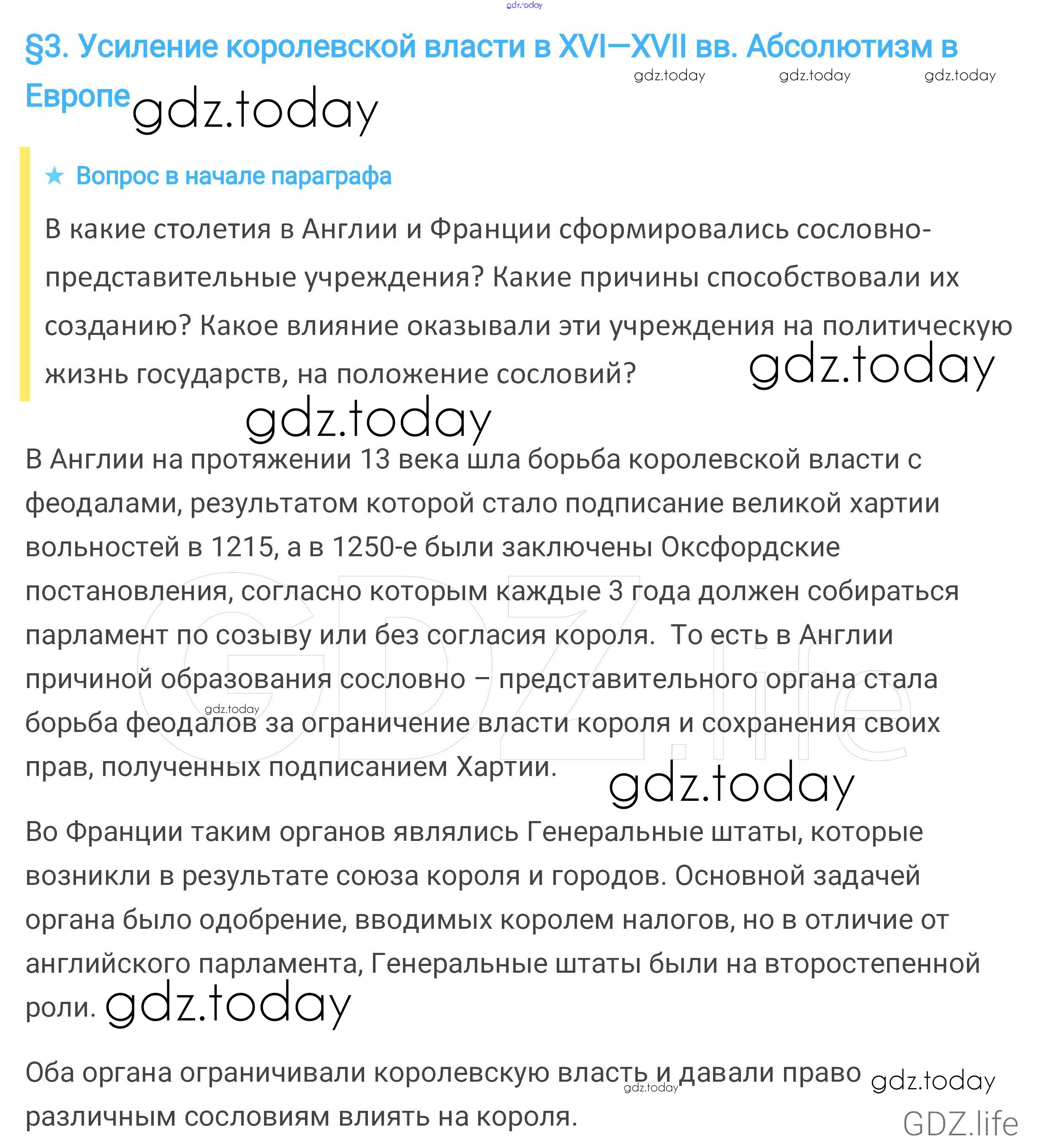 На страницах сайта gdz.today вы найдете учебный и вспомогательный материал, направленный на улучшения знаний школьной программы. ГДЗ - онлайн мир знаний Параграфы (решение) 3 Учебнику по Всеобщей истории для 7 класса Юдовская, Баранов Просвещение 2014
