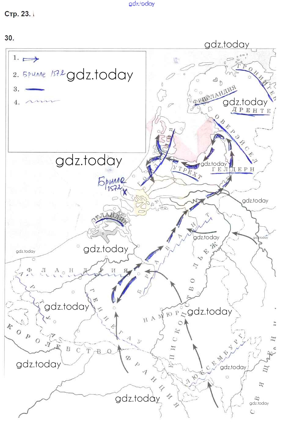 На страницах сайта gdz.today вы найдете учебный и вспомогательный материал, направленный на улучшения знаний школьной программы. ГДЗ - онлайн мир знаний Страницы (решение) 23 Рабочей тетради по Всеобщей истории для 7 класса Волкова, Пономарев Дрофа УМК 2018
