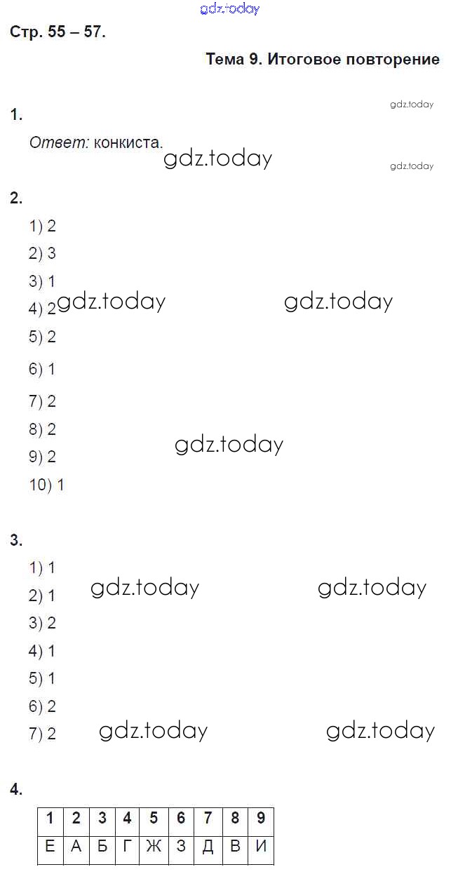 На страницах сайта gdz.today вы найдете учебный и вспомогательный материал, направленный на улучшения знаний школьной программы. ГДЗ - онлайн мир знаний Страницы (решение) 55 Рабочей тетради по Всеобщей истории для 7 класса Волкова, Пономарев Дрофа УМК 2018